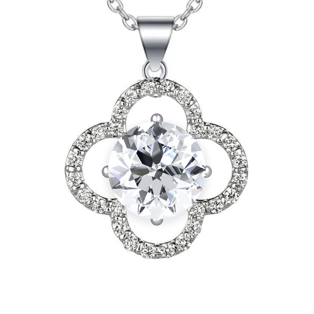 💎 A gorgeous 2 carat, 8mm moissanite takes centre stage, radiating brilliance surrounded by the shimmering glow of the clover setting. Every facet of the moissanite is carefully and skilfully cut for a mesmerising sparkle. Your necklace will come packaged in a gorgeous velvet gift box and accompanying GIA certificate to verify the authenticity of your gemstone.